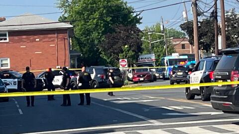 There is an active investigation and a crime scene established while police canvas the area around a NJ police station for potential shooting victims at this time.