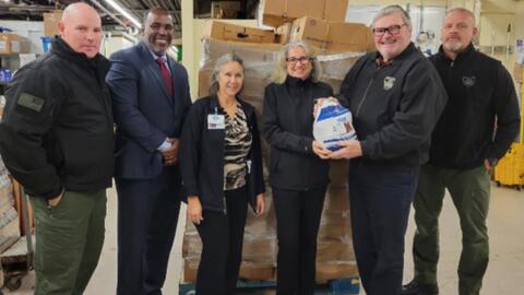 Morris County officials reported that on Friday, November 18, 2021, several Morris County Prosecutor’s Office members joined Table of Hope to distribute frozen turkeys and food boxes at the County College of Morris.