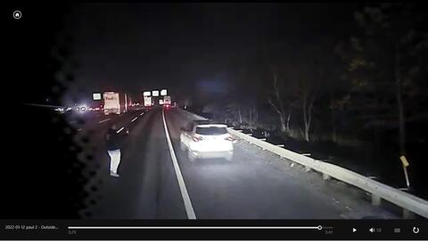 According to  NJ State Police, the two SUVs, one white and one gray, boxed in the tractor-trailer in the right lane.
