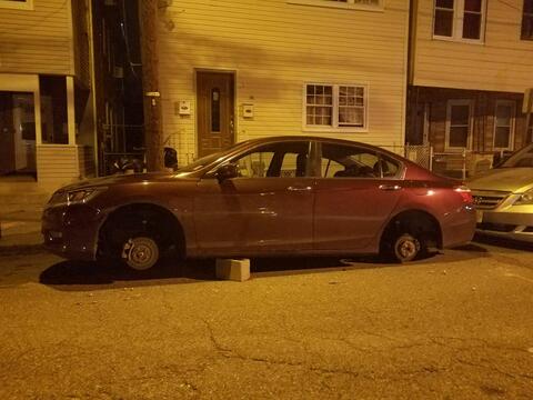 Police in Passaic are on the search for the suspect/s who stripped the wheels from a vehicle, leaving it on brick overnight.