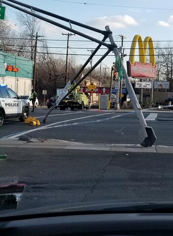 According to authorities, a truck making a right turn struck the traffic pole when it tried to make a right turn.