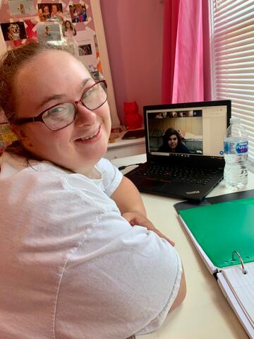 Jessica Gaeta, 22, is a Community Access Unlimited (CAU) member who made the switch to virtual services this spring. She is enjoying a busy schedule studying music and theater, self-help, math, history, and visual and digital art with the Academy of Continuing Education (ACE).