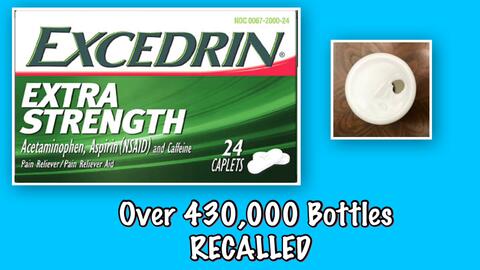 GlaxoSmithKline voluntarily issued a recall Wednesday for over 430,000 bottles of Excedrin due to a manufacturing defect that may have left holes in the bottom of the drug that relieves pain.
