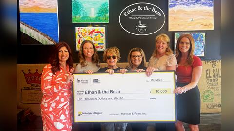 Carol Voorhis, Hanson & Ryan Account Executive and Head of Philanthropy, originally received a $5,000 donation for Ethan & the Bean thanks to a submission process with Liberty Mutual® and Safeco Insurance® through their 2023 Make More Happen™ Awards.