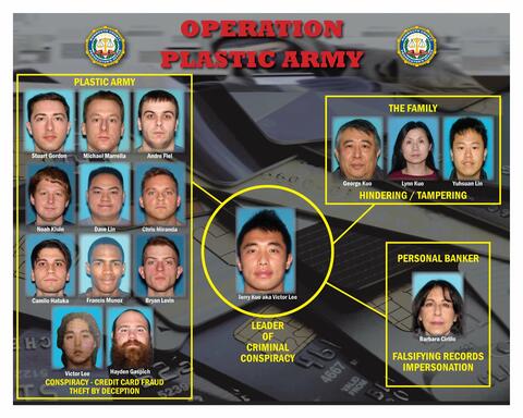 FREEHOLD – A two-year operation focusing on eradicating fraud and identity theft has resulted in the arrest of 16 individuals during “Operation Plastic Army.” The operation, running from November 2017 to January 2019, resulted in the dismantling of a crime enterprise that defrauded more than a dozen financial institutions. Among those arrested in the sweep was tennis instructor Terry Kuo, also known as “Victor Lee,” or “Young Sheng Tang,” who was charged with 15 counts, including Conspiracy, Theft by Deception, Insurance Fraud and Forgery, announced Prosecutor Christopher J. Gramiccioni.