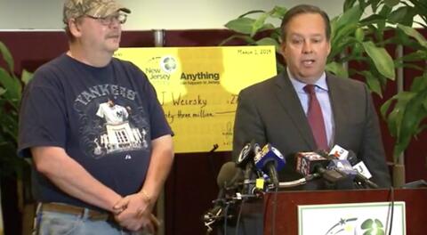 James A. Carey, Jr., New Jersey Lottery acting executive director, today held a press conference introducing Michael J. Weirsky, as the winner of the $273 million Mega Millions jackpot from the Mar. 1st drawing.