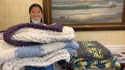 Academy of the Holy Angels Teen Knits Blankets for Facility That Cared for Her Grandmother