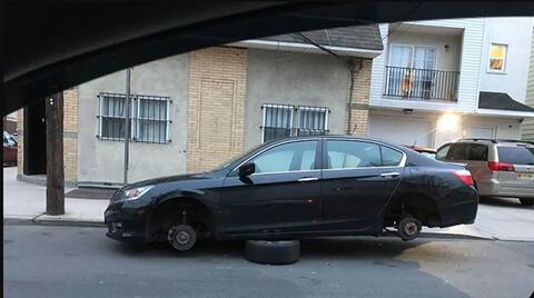 Residents return from work dialed 911 when they notice a vehicle stripped of its wheels in the vicinity of Pennington and Herman streets before 5 p.m.