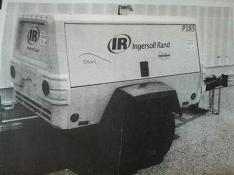 The Ingersoll Rand compressor has the number “P185” on it and is cream and black-colored. It is valued at $14,500.