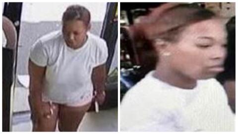 The suspect is described as 5’6” tall, with a medium brown complexion, and was wearing a white t-shirt, pink shorts, and pink hair, tied in a ponytail.