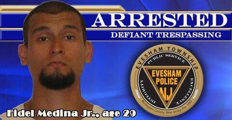 Police subsequently arrested Fidel Medina Jr., 29, of Hamilton, and charged him with 3rd degree Defiant Trespass and 2nd degree Possession of a Weapon for an Unlawful Purpose. He was transported to a mental health facility for an evaluation.