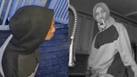 The burglary occurred around 5:35 a.m. on May 1, 2025, when the suspect was caught on surveillance video entering a home through a basement window in the 200 block of Grafton Avenue.