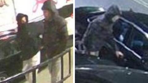 Detectives say suspect one was wearing gray jeans, white low-top Air Force One sneakers, and a black bubble coat.