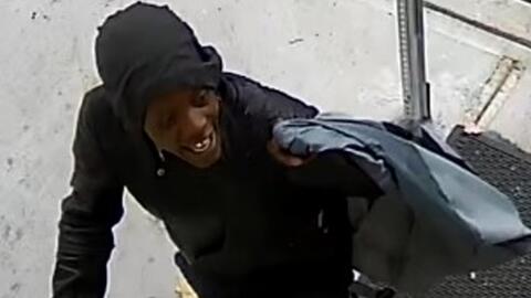 Police say the suspect is described as a female with a medium complexion, wearing a black jacket with a hood and black pants with two white stripes on the legs.
