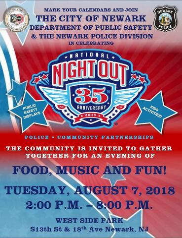Newark Police officials invite all to the 35th Annual “National Night Out Against Crime,” 2 p.m. to 8 p.m., Tuesday,