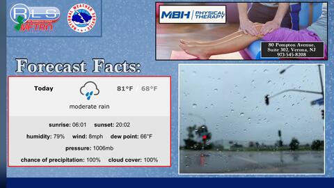 Residents in the Newark and the North Jersey region should prepare for wet weather as showers and possibly a thunderstorm are expected, primarily afternoon.