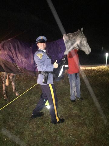 Fortunately, responding troopers were able to corral a second horse that was not injured. Only minor injuries were reported.