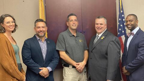 Pictured [Left to Right]: Jaime Costello, Executive Director of Hope One; William Mazur, Executive Director of Hope Exists Foundation; Sheriff Eric Scheffler; Prosecutor William Reynolds; Raymond Royster, Director of Community Outreach, Atlantic County Prosecutor’s Office.