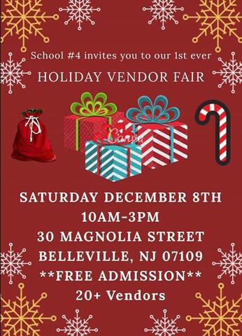 Please join organizers at School 4 in Belleville for their holiday vendor Fair.