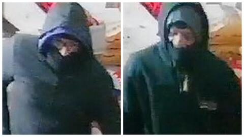Both suspects were described as wearing dark clothing with their faces partially covered, making identification difficult.