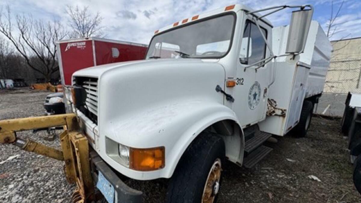Among the items available is a 1994 Volvo White GMC garbage truck, along with a 1990 International tree chip truck and a 2014 Chevrolet Tahoe previously used as a police vehicle.