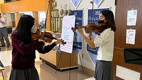 Music in Our Schools Month® is here again, and the halls of Holy Angels are alive with pop-up performances by the Academy's vocalists and instrumental musicians.