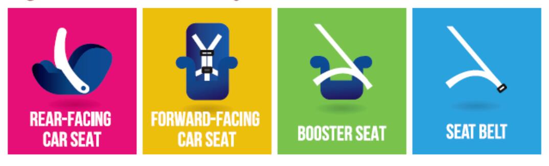 *  Children up to age 2 and weighing up to 30 pounds must be in a rear-facing car seat with a five-point harness.