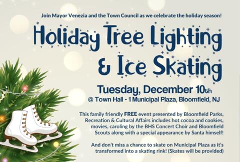 BLOOMFIELD, NJ -- The Township of Bloomfield’s annual Christmas Tree Lighting postponed last week due to bad weather has been rescheduled for Tuesday, December 10, at 6:30 pm.