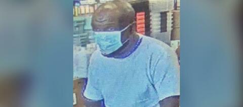 Police describe the suspect as an African American Male, tall, wearing a white T-shirt and blue face mask.