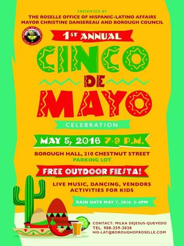 The Borough of Roselle cordially invites the community to their 1st Cinco de Mayo Celebration this evening.
