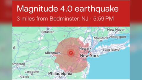 An aftershock with a preliminary magnitude of 4.0 struck southwest of Gladstone, New Jersey, marking a significant seismic event following this morning's 4.8 magnitude earthquake.