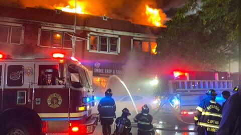 Over three dozen firefighters are battling a massive fire that broke out in a mixed-use building in Paterson overnight.