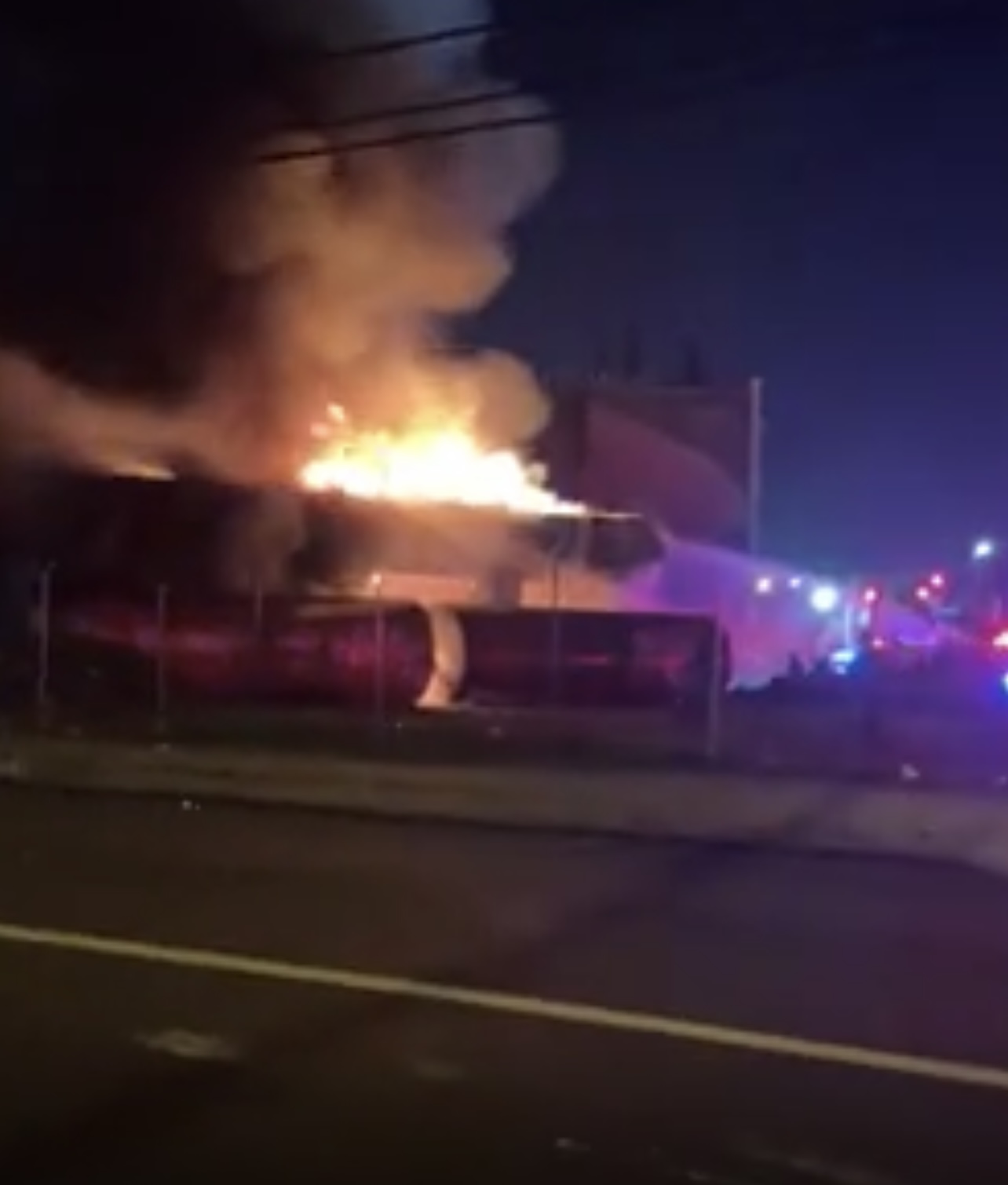 Over a dozen firefighters have surrounded the fire and are now pouring water on the flames from all angles.