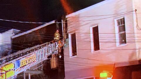 More than two dozen firefighters are on the scene battling a raging 5-alarm fire that's burning out of control in a neighborhood in Jersey City.