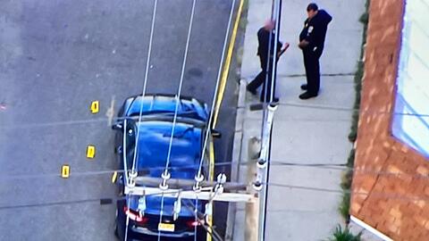 Police taped off the area while detectives marked off about a dozen shell casings during the investigation.