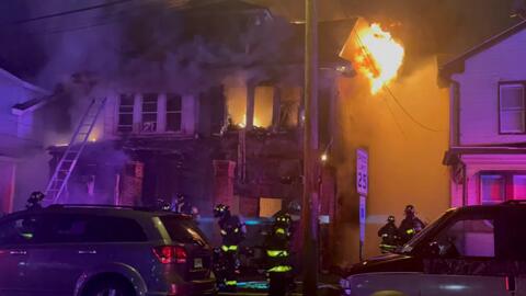 Crews stretched several lines as they beat down intense fire while rescue crews forced entry into the home after witnesses informed them that occupants were tramped inside one of the residences.