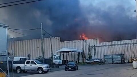 While firefighters stretched over a half dozen lines to battle intense flames where residents from as far away as New York City could see thick smoke billowing in the air.