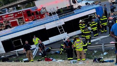 According to NJ State Police, at approximately 6:53 p.m., troopers responded to a crash involving an overturned bus on the NJ Turnpike Thomas Edison Service Area entrance ramp from the outer roadway.