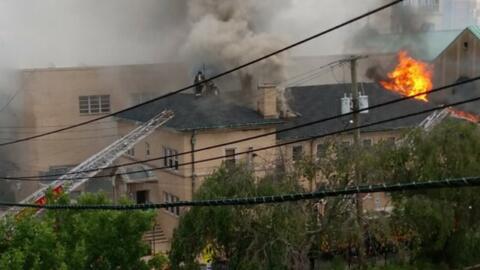 Officials said heavy flames that burned at 118 7th Avenue extended to the St. Lucy’s Church around 2:30 p.m. sending firefighters to the scene.