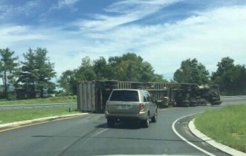 Our platform members see this overturned truck near exit one in Parsippany at this time.