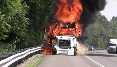 Police say the driver of the truck was able to make it off the shoulder, where crews began the work of putting the blaze out.