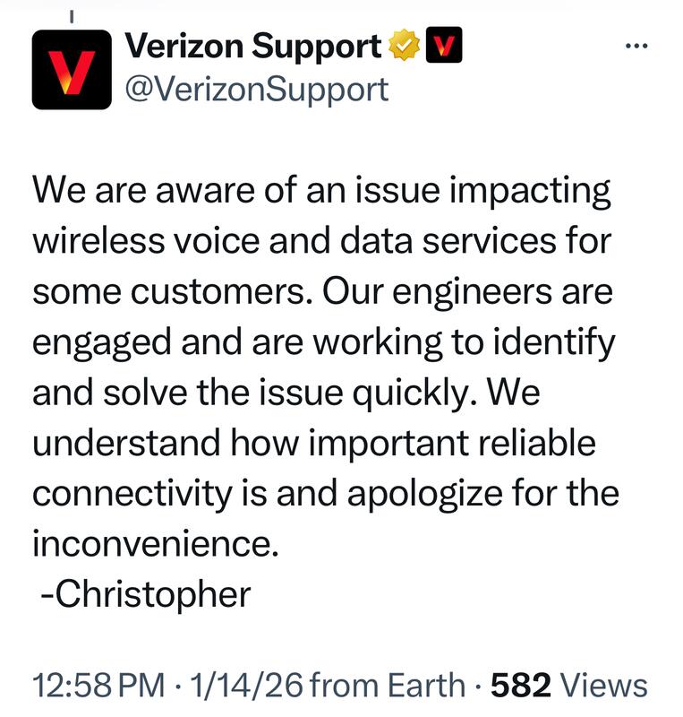 “We understand how important reliable connectivity is and apologize for the inconvenience,” the carrier said in the statement. Verizon encouraged affected customers to check its network status page for the latest updates on service availability and restoration efforts.