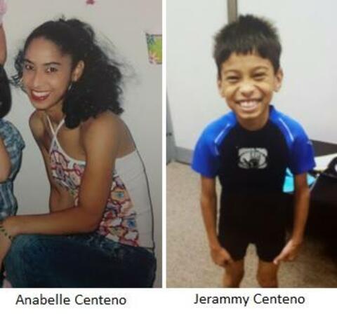 Jerammy is described as a Hispanic male, 3’11”, 40 pounds, with black hair and brown eyes. He was last seen wearing an orange shirt with a shark on it, green camouflage shorts and black flip-flops. Anabelle Centeno was last seen wearing a gray dress.