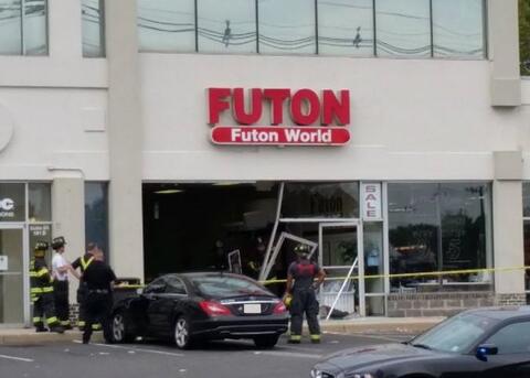 A pedestrian outside Futon World in Woodbridge was injured today when a 64-year-old woman drove a vehicle into the business sometime after 2 p.m. today.