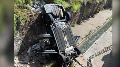 Firefighters stationed nearby responded rapidly and discovered the car overturned, but the basin was not filled with water.