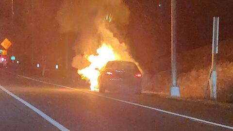 Upon arrival, crews found a vehicle fully involved in flames off on the shoulder of the roadway.