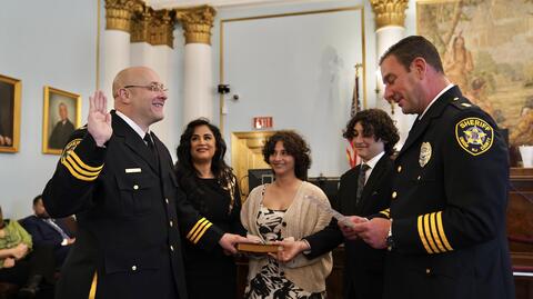 Earlier this afternoon, Undersheriff Carlo Caparruva was sworn in by Sheriff Peter Corvelli as a Union County Undersheriff at a ceremony held in the courtroom of the Honorable Lisa Miralles Walsh, Assignment Judge of the Union County Vicinage.