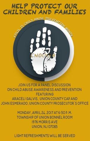 In honor of Child Abuse Prevention Month the Township of Union hosts a panel discussion this evening.