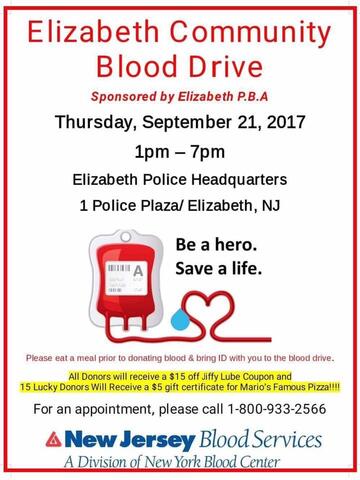 The Elizabeth Police Department and the New Jersey Blood Services are asking the public to roll up its sleeves to make a blood donation.
