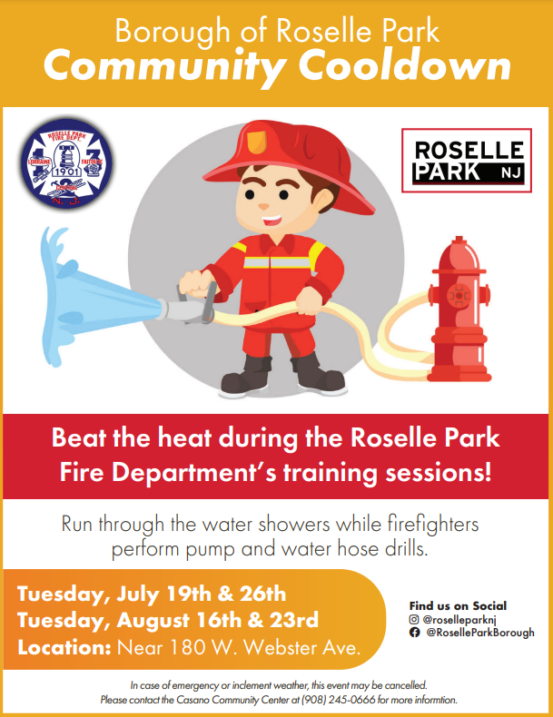 The Borough of Roselle Park and the Roselle Park Fire Department will be hosting four community cooldown events during July and August.